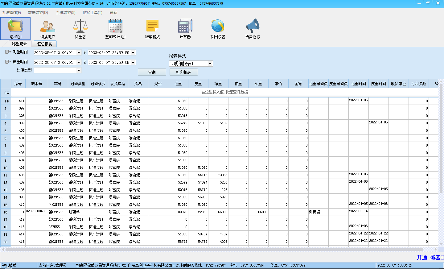 2、簡單稱重。一次過磅。因?yàn)橛械钠髽I(yè)的車輛是固定不變的。車輛的皮重已經(jīng)知道,并首先存儲(chǔ)與稱重系統(tǒng),所以一次過磅就行了。