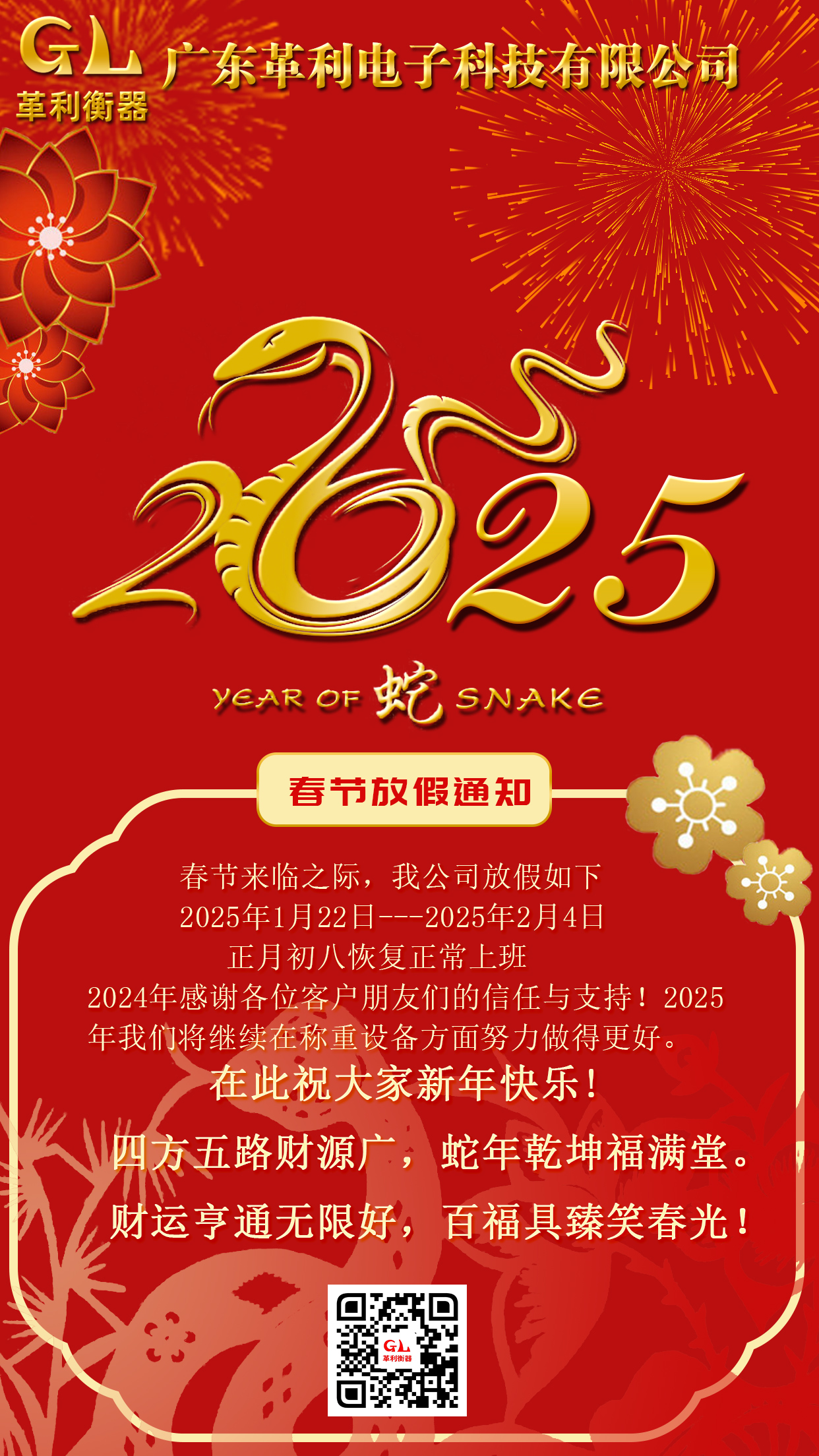 2025年革利公司春節(jié)放假通知:2025年1月22日-2月4日放假:共14天,正月初八開工!