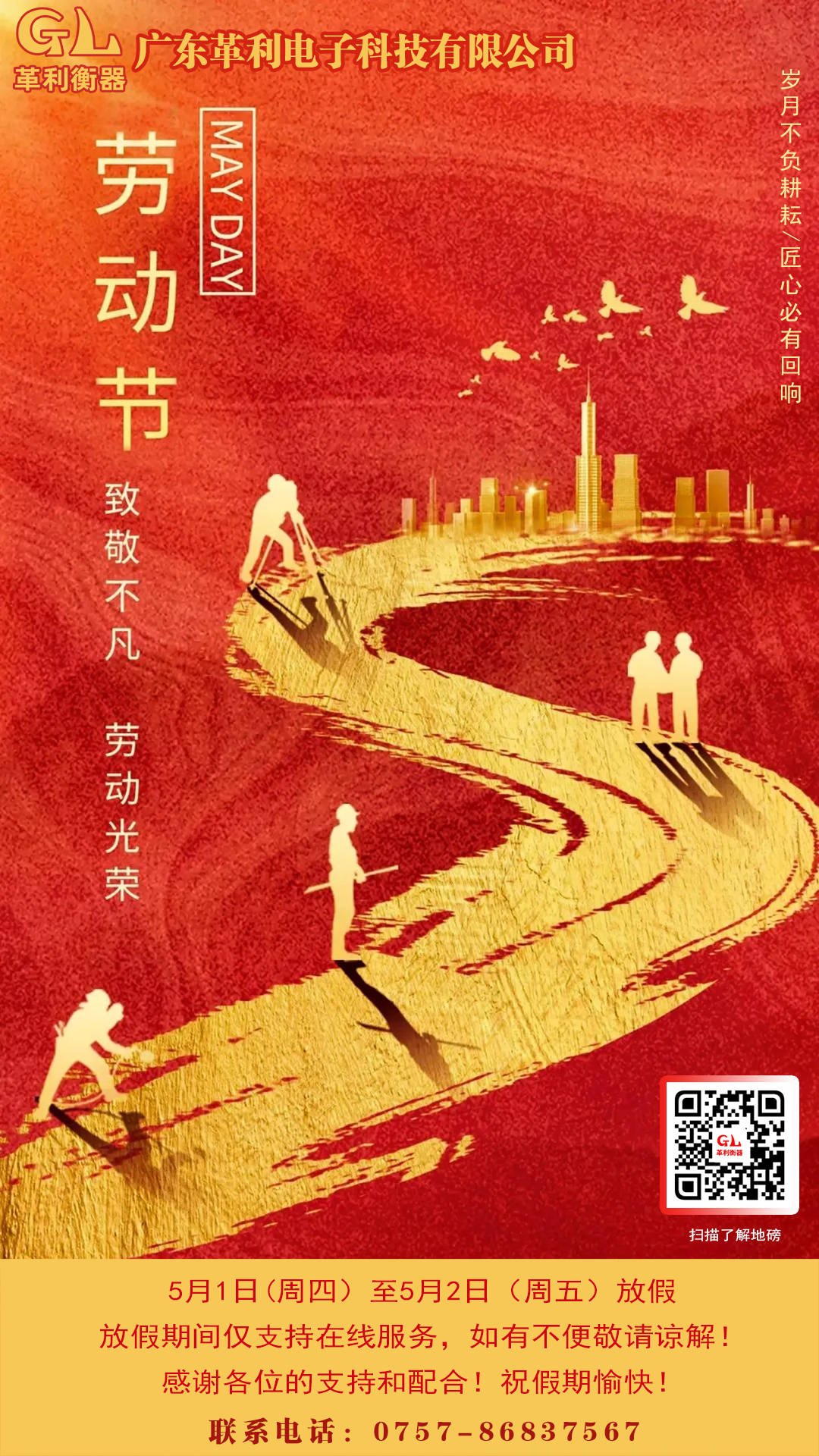 2025年革利公司五一放假通知:5月1日-2日放假:共2天。